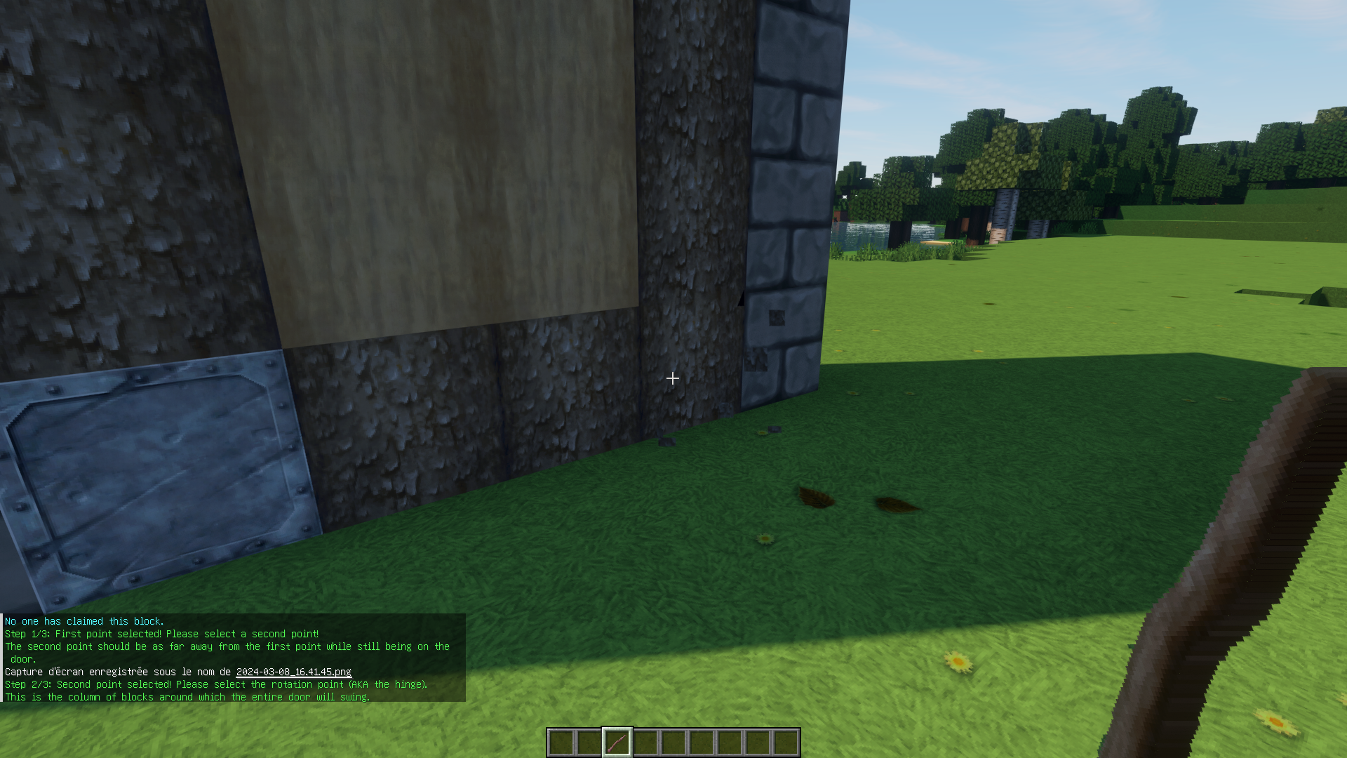 Retournez dans le menu /bdm pour assigner un bloc qui ordonnera à la porte de s'ouvrir/se fermer (il vous faudra poser un bloc d'or)